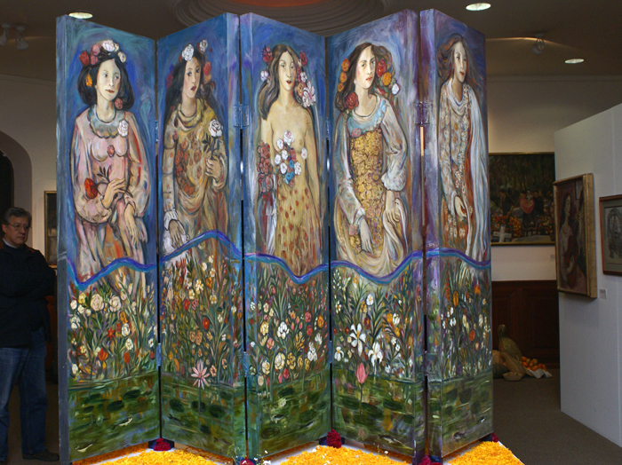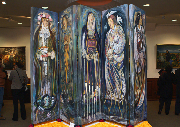 Biombo (screen), side one, Juan Torres. Expo Noche de Muertos, Galería Secretaría de Turismo (Gallery of the Secretary of Tourism), Morelia, Michoacán, November 2010.