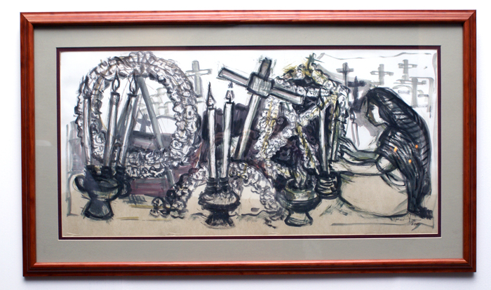 Panteón (Cemetery), oil and watercolor, 40cm X 90cm, Juan Torres. Expo Noche de Muertos, Galería Secretaría de Turismo (Gallery of the Secretary of Tourism), Morelia, Michoacán, November 2010.