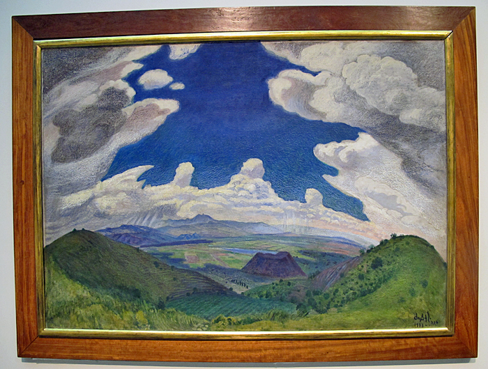 Dr. Atl was also an exceptional painter of clouds. This painting is Nubes sobre el Valle de México (Clouds over the Valley of Mexico), 1933, Atl color on asbestos. Collection Museo Nacional de Arte INBA.