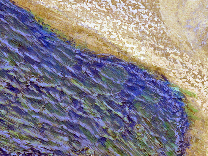 Detail mid-right side, Nubes sobre el Valle de México. Note the variety of brushstroke used to create texture in the painting. Click on any photograph to enlarge the detail.
