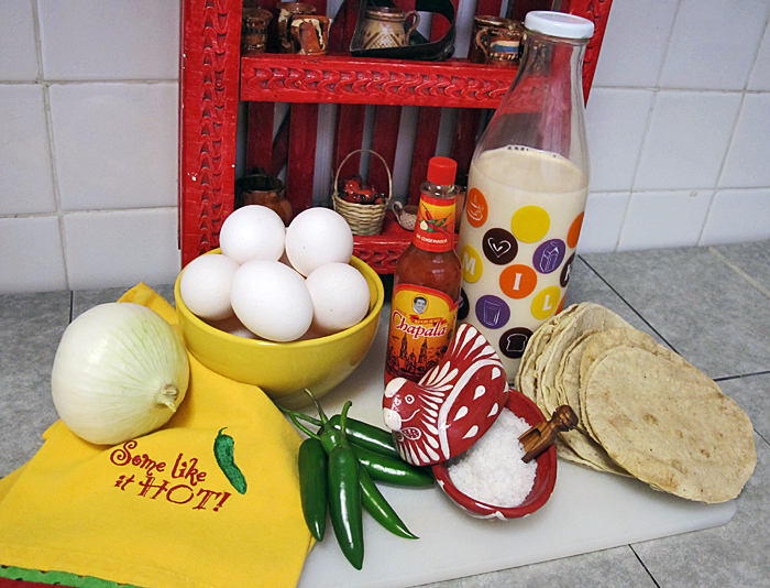 In March 2013, we prepared chilaquiles con huevo (chilaquiles with egg), a simple, home-style breakfast classic much eaten at Mexico Cooks!' house. Whether you want a filling breakfast or a simple comida (midday meal), these few ingredients make a tasty and popular combination.