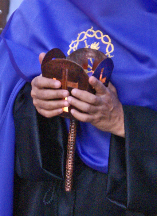 Penitents from one of Morelia's confraternities carry their crosses the length of the procession. Many march barefoot through the city streets. The procession celebrated its thirty-third anniversary this year.