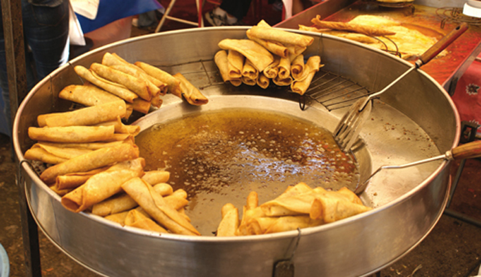 Heat enough lard or oil in the wok or large, deep frying pan to fry two or three gorditas at a time. Slide the gorditas into the fat and allow them to fry until deep golden brown. Remove the gorditas from the fat with the strainer and then keep them hot on the comal or griddle. Drain on paper towels if needed.