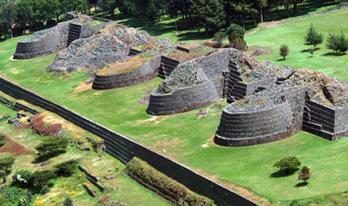 Archeologists generally consider the yácatas (pyramids with round bases) in Tzintzuntzan to have been a ceremonial center and residence for early Purépecha priests. Originally, on each of the yácatas was a temple made of wood in which the most important rites of the Purépecha people and government took place, including burials, of which about sixty have been found. The burials that have been excavated contain rich grave goods and are probably of kings and high priests. Although reconstruction began in the 1930s, two of the yácatas remain in their found condition. Photo courtesy Google Images.