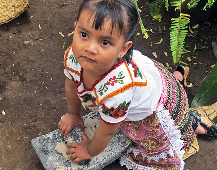 This is Imelda, a charming Purépecha child already learning the traditional kitchen skills used by the ancestral generations of women on whose shoulders she stands. Morelia, Michoacán, 2012.