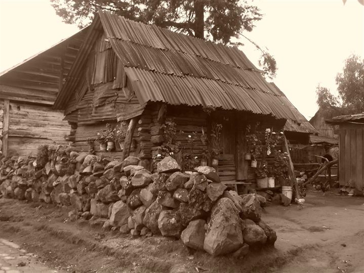 Many Purépecha continue to live in small villages, in some respects isolated from cultures other than their own.  Their homes, called trojes, are made of heavy, hand-hewn thick pine boards.  Each room of a troje is separate from every other room.  The buildings are constructed without nails and can be dismantled and moved.  The kitchen, living quarters, sleeping and storage rooms are individual small buildings such as the one in the photo to the right.