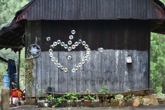 The design on this troje is made with old music CDs.  Pre-conquest Mexico, meet the 21st century.  Angahuan, Michoacán, 2013.