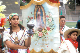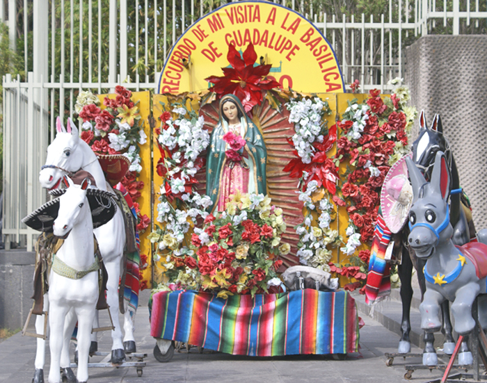Nuestra Señora de Guadalupe is Mexico's patron virgin and her image adorns churches and altars, house fronts and interiors, taxis and buses, bull rings and gambling dens, restaurants and houses of ill repute. The shrine of Our Lady of Guadalupe, known affectionately as La Villa, is a place of extraordinary vitality and celebration. On major festival days such as the anniversary of the apparition on December 12th, the atmosphere of devotion created by many hundreds of thousands of pilgrims is truly electrifying.