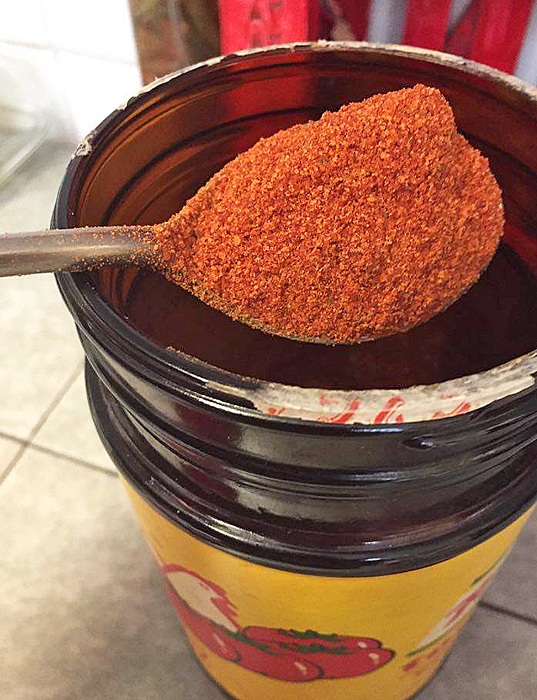 The housewife's secret weapon: Knorr Suiza Tomate, a powdered bouillon concentrate for the times when you just don't want (or don't have the ingredients) to make a caldillo de jitomate (thin tomato broth). You can also buy Knorr Suiza in boullion cubes; it also comes in beef, chicken, and shrimp flavors. In 'homey' Mexican recipes, this convenient ingredient is often written knorrsuiza. High-end chefs look down their noses at knorrsuiza, so let's not tell any of them that we're using it today.