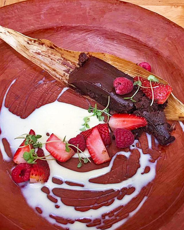 You've heard that old saying, "Life is uncertain, eat dessert first…"? Here we are, beginning at a meal's sweet ending with a tamal de chocolate (chocolate tamal) from Pasillo de Humo in Mexico City. I've eaten others in the city that don't quite make the cut, since most are dry and not very chocolate-y. This one, on the other hand, is more like a deeply rich yet still light-textured chocolate bar. Two thumbs up!