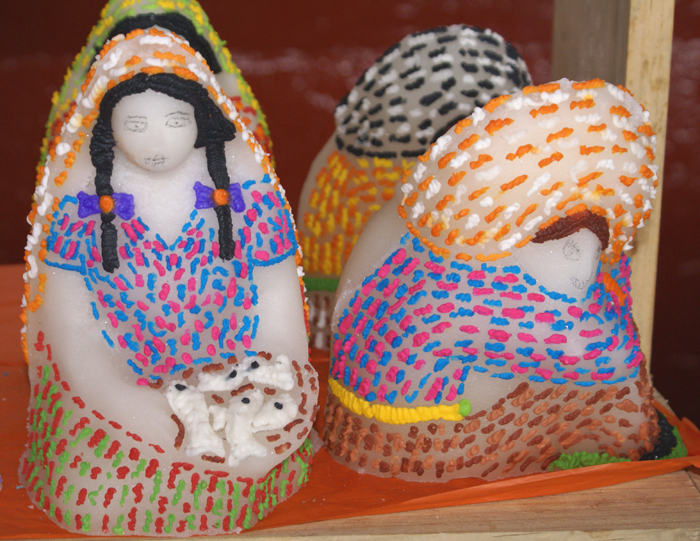 When I arrived, I discovered that it was tianguis (street market) day in Concepción de Buenos Aires. The streets around the town square were closed, blocked by vendors' booths. Rock music blared and the dusty cobblestones were crowded with men in jeans and cowboy hats, women in red-checkered aprons buying vegetables for the day's comida (dinner), and little children tugging at their older siblings' hands as they pleaded for a candy or toy. I squeezed into a parking space and navigated through booths of bolis (a frozen treat), flower arrangements, and DVDs to get to the parish steps.
