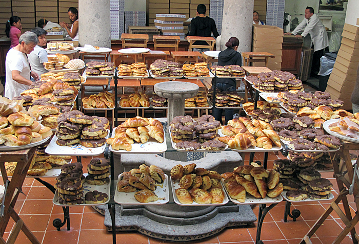 Our tour took in three bakeries, all within a few blocks on Calle 16 de septiembre in Mexico City's Centro Histórico. Pan Segura is the smallest of the three, barely big enough for four or five people to shop for bread at the same time. Pastelería El Molino, just down the street, has been in business since 1918 and was purchased first by Carlos Slim Helú's Panadería El Globo and then was sold to Grupo Bimbo, a giant international wholesale bread-baking concern which bought both bakeries in 2005.