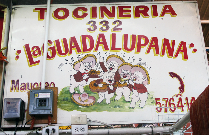 d.  This pork butcher's sign is always a favorite photo opportunity: unsuspecting little pig mariachis sing for somebody's supper!