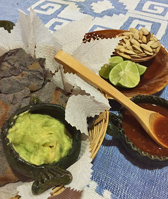 While in Oaxaca, we learned to make Oaxaca-style mole verde (green mole), among other dishes, in the most generous, love-filled, best cooking class ever. This simple dish, rich with flavor, is now a staple on Mexico Cooks!’ table at home.  If you’d like to take this class, let me know and we’ll schedule a tour in Oaxaca.