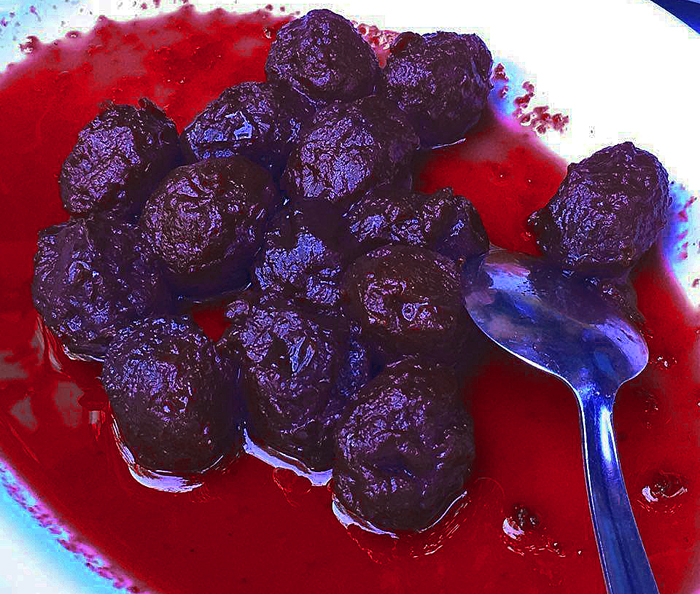 The road from San Martín Tilcajete took us back to Oaxaca city, where we enjoyed a marvelous comida (main meal of the day) at La Teca.  In the photograph, you see a plate of ikake, a fruit in conserve that was one of our desserts.  The cooked consistency of the fruit is similar to that of a cooked plum, and the stone is nearly as large as the fruit itself.  Mexico Cooks!' spelling may be incorrect; the name of the fruit does not appear to be Spanish, but is most likely a transliteration of a Zapotec word.  If you are familiar with this fruit, please email me!  You can read here about all of the delights of La Teca's wonderful food from the Isthmus of Tehuantepec.  It's one of my favorite restaurants in all of Mexico.