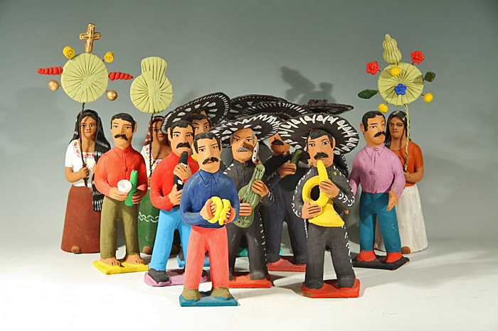 Typical clay village figures by doña Josefina Águilar.  The tallest of these measures approximately 10" high.  Photo courtesy Liveauctioneers, 2013.