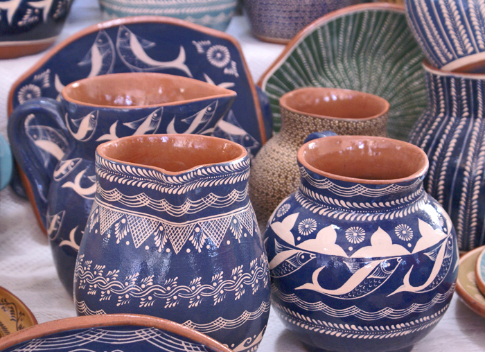 In the fully equipped main kitchen–guests are free to use it–the corn on the Michoacán-made copper charger is real (and really that color) and so is the banana, but the red pepper is glass. Art mixes perfectly with nature at La Casona Rosa.
