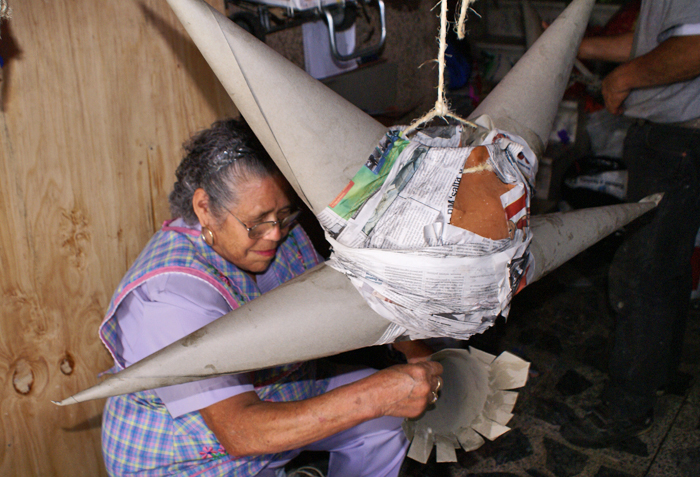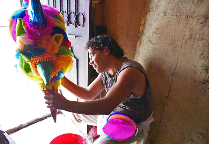 Elia Ramírez Ramírez is packing small sweet treasures in Mexican pottery containers. The packaged candies are destined for the retail store. All employees who work directly with the public wear 19th Century costumes.