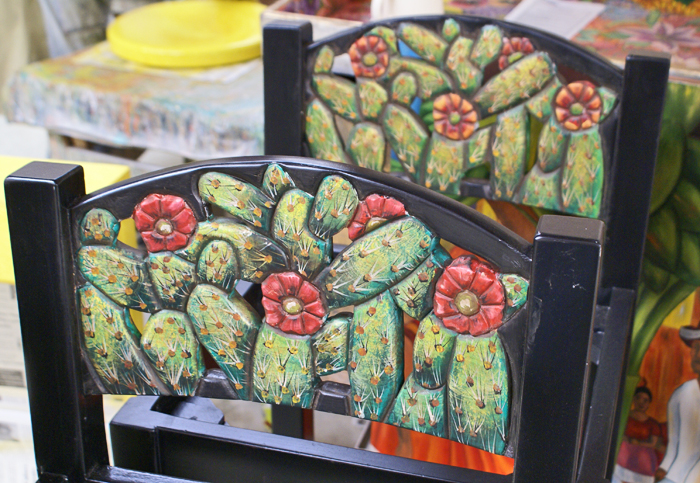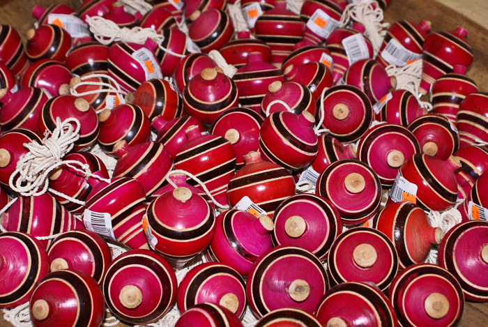 Another entire room of the store is just stuffed with a variety of small toys, perfect for an inexpensive souvenir from Morelia. Inexpensive and easy to pack, they're exactly right for the child in all of us. These are baleros. The idea is to hold the long handle in your fist (with the cup on top) and catch the small wooden ball. It looks easy to accomplish–but it's quite a challenge!