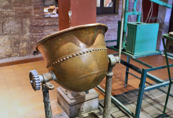 One room of the museum is set up with machinery used in the 1940s, when the family candy business was only 100 years old! This beautiful hand-made copper pot has a double bottom, like a bain-marie, to keep the cooking candy from burning.