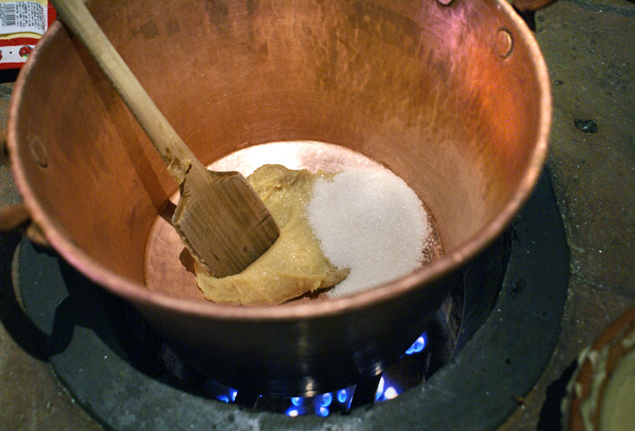 In the demonstration kitchen, Mexico Cooks! watched as the cook combined equal parts fresh membrillo (quince) pulp and cane sugar in a copper pot. She was preparing ate de membrillo (quince candy). When the mixture formed una cortina (a curtain) without dripping as the wooden spoon was lifted from the pot, the ate was at its point of perfection.