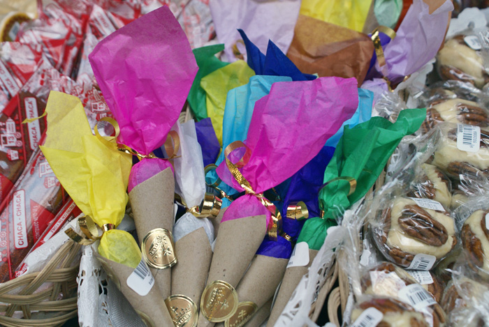 In part of the retail shop, lines of baskets hold individual candies for instant gratification of your sweet tooth–or to pack easily into your suitcase to carry home as gifts. The tissue-paper-wrapped candies are similar to jamoncillo.