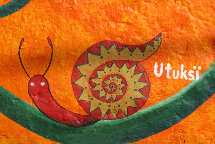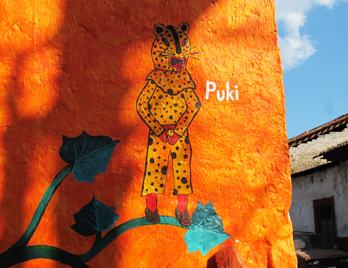 Titita told me that this little clay pig–although it's not so little, measuring more nearly a meter from snout to tail–hails from Toluca and is used to steam-heat tamales. The door in the side, once used for carbón (Mexico's charcoal), is now used for an alcohol burner.