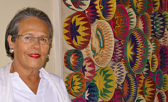 Titita Ramírez, standing next to the gorgeous wall of baskets that decorates the Colonia Polanco branch of El Bajío. After our several-hour multi-course meal at the original location, Titita took us to Polanco to see that site. "Yes, we'd love to go with you today–but," we begged her, "please, please, don't feed us anything else!"
