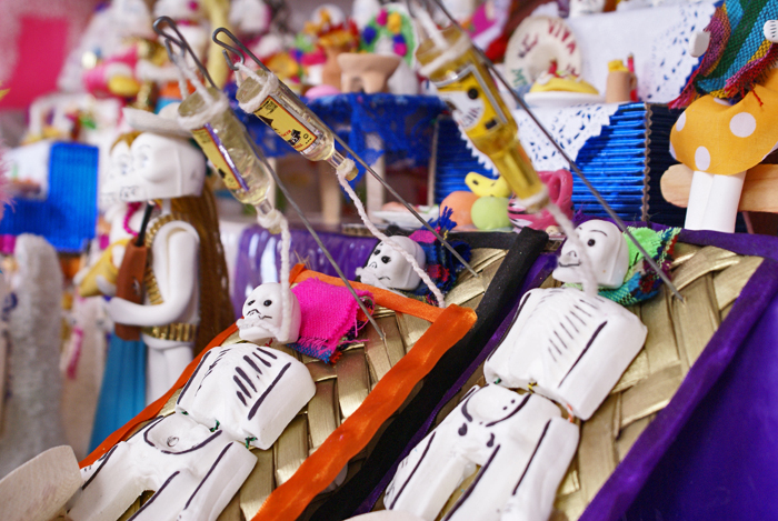 This small representation of the Virgin Mary, ensconced in a flower-adorned niche at the top of Benedicta's stand, is dressed in typical Purépecha clothing, all made by Benedicta. Notice that her apron is hand-embroidered with typical clay jugs. In 2012, this Virgin traveled to the Vatican with a delegation of artisans and officials from the state of Michoacán, including Benedicta. She and a team of assistants prepared a typical Purépecha dinner for 900 people, including Pope Benedict XVI. Maestra Benedicta was thrilled to cook for her tocayo (namesake). Maestra Benedicta recently laughed as she told a group, "I never thought that I would leave my home in little San Lorenzo, but now–now I feel like a swallow, flying here and there."