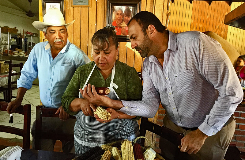 4. In the blender, liquify the chiles, the anisillo, and the masa with two cups of water. Strain and add to the pot where the corn on the cob is cooking.