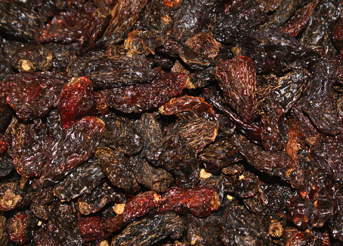 3. Cut the stem away from the chiles, take out the seeds and veins. Cut the chiles into small pieces.