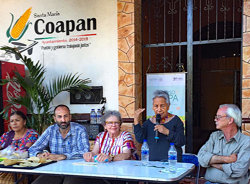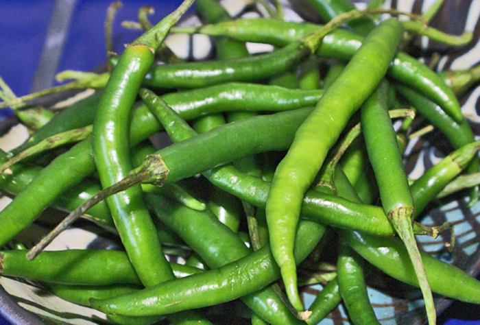 Who wants to take a guess at what each of the green herbs (and the vegetable) is? The elotes (tender fresh Pátzcuaro red corn) at the bottom of the photo were part of a small daily harvest brought to sell on the outdoor periphery of Pátzcuaro's market. Just to the left of the corn, at the bottom of the photo, are some mint branches that the same vendor brought for sale. But above the mint? Click on the photo to enlarge it and you'll be able to tell that these are home-grown spiny chayotes. You are probably familiar with the paler green smooth-skinned chayotes (mirliton in Louisiana, pear squash in other English-speaking locations). The chayote has an interesting growing habit: unlike most squash, which grows as a vine along the ground, the chayote is airborne–its vines grow on overhead trellises and remind me of grapevines; the small squash hangs down from the vines. It's an extremely versatile vegetable, taking on the flavors of what you cook it with. Be sure to eat the soft, tender, flat, white seed–it's considered to be the prize part and is as delicious as the chayote itself.