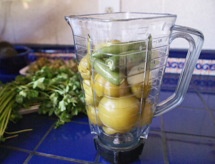 Carne de puerco en salsa verde from the Mexico Cooks! home kitchen. The preparation looks similar to that at Fonda Margarita, but I tweak a thing or two that make the recipe my personal tradition, different from the restaurant's.