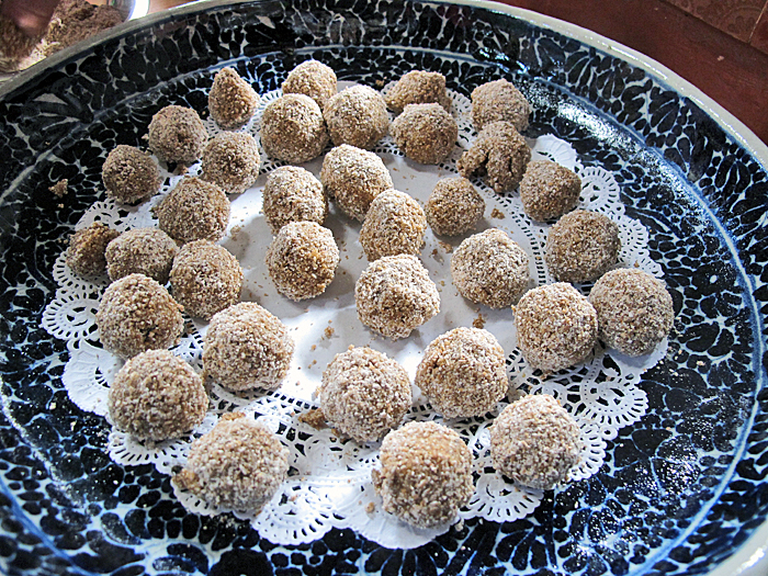 Next Sra. Zaragoza showed me a big crate filled with beautiful freshly made ates martajadas. I was amazed to watch her gently tip one of the ates out of a terra cotta mold. The mold was unglazed on the outside and glazed on the inside. Each ate had a raised design on its surface. Some were flowers, some were hearts, and some were wonderful roosters.