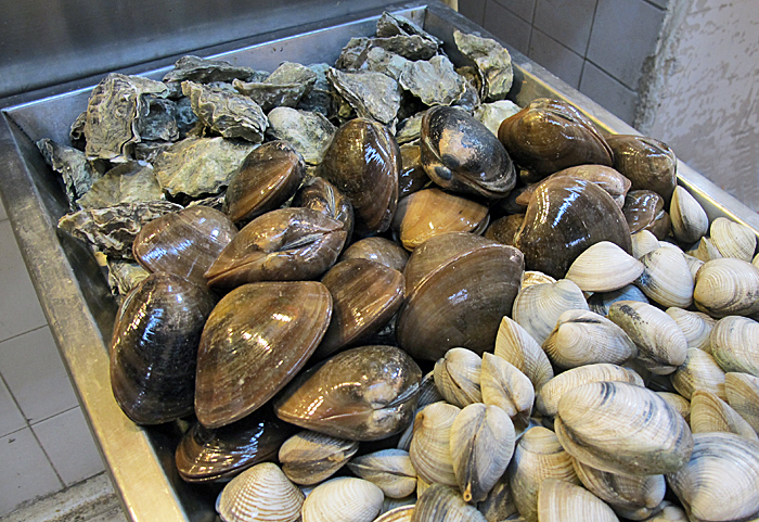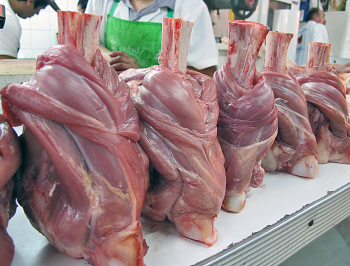 We walked into the rear of the booth where her husband was peeling what looked like a mountain of membrillos. "This is Poli Herrera, and this is what he does. He's in charge of peeling all the fruit, cutting it in half, and taking out the heart, where the seeds and their coarse coverings are." Poli held out his wrist for me to shake: ??his hands were clean but damp from the fruit.