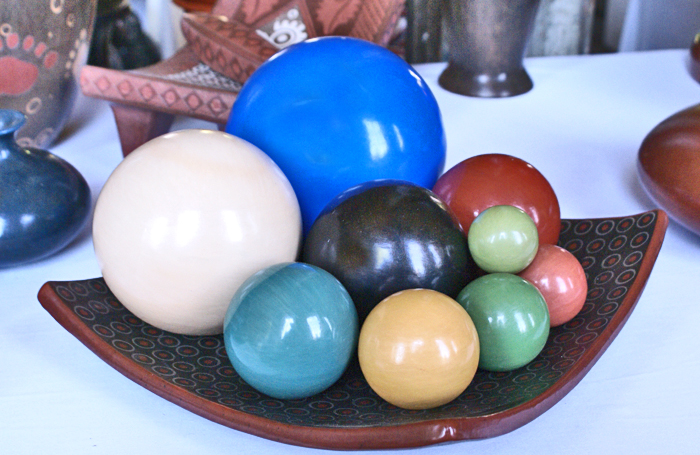 Clay spheres and their tray are made in Zinapécuaro, Michoacán.