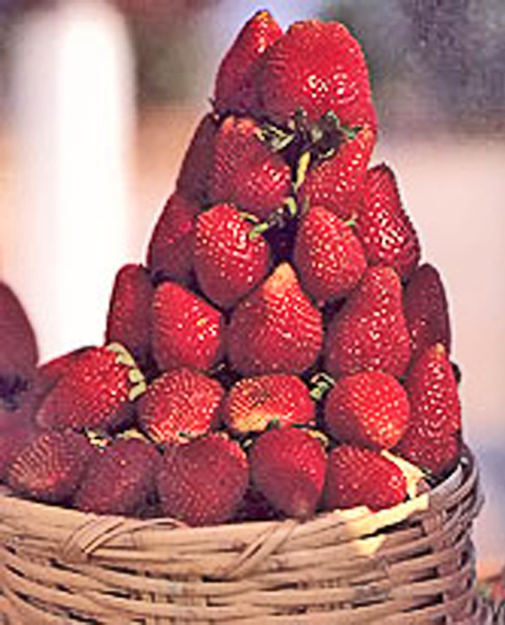 These are jocotes (native Mexican plums), also in season now in central Mexico. The fruit measures about two to three inches long; the flesh is either bright orange or deep red, and the flavor is marvelous. Unfortunately the stone of this plum is almost as big as the entire fruit, and although you could eat it out of hand, the delicious jocote is most often made into an agua fresca (fresh fruit water) that is only available during the fruit's short season. This little plum is replete with Vitamins A and C, phosphorous, iron, and calcium, and is said to work wonders with gum problems.