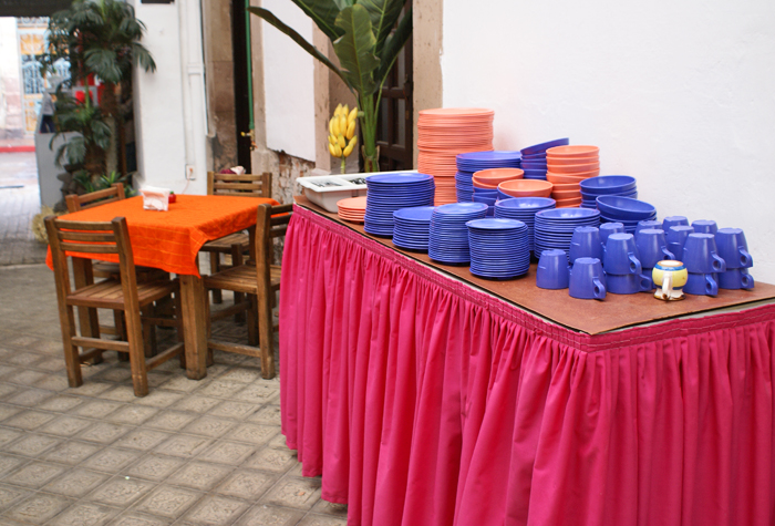 whitewashed walls. On a low