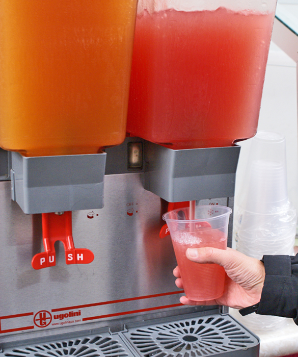 day. He dips the milk out of his big metal milk can with a liter