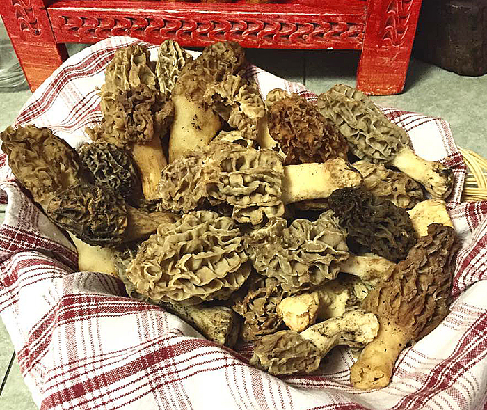 Can you even believe it?  The cool, refreshing rainy season in central Mexico means wild mushrooms!  The season is just beginning.  I bought these glorious fresh morels at a municipal market where I often take touring foodies. Women from small towns in mountainous areas around Mexico City forage for these and other mushrooms (chanterelles and lobster mushrooms, anyone?) and sell them at local markets.  These morels were so inexpensive (80 pesos the kilo–about $4.00USD) that I bought a kilo (2.2 pounds) and gave half to my neighbor.