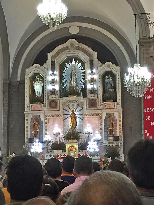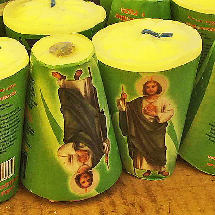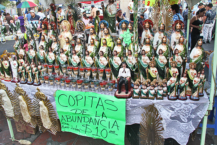 November 2013 altar to La Santa Muerte (Holy Death), Sta. Ana Chapirito (near Pátzcuaro), Michoacán. Devotees of this deathly apparition say that her cult has existed since before the Spanish arrived in Mexico.