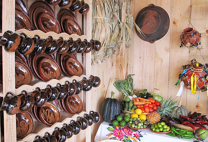 Wall of bas relief vegetables at my friend Pilar Cabrera's Restaurante La Olla, Calle de la Reforma 402, Col. Centro.