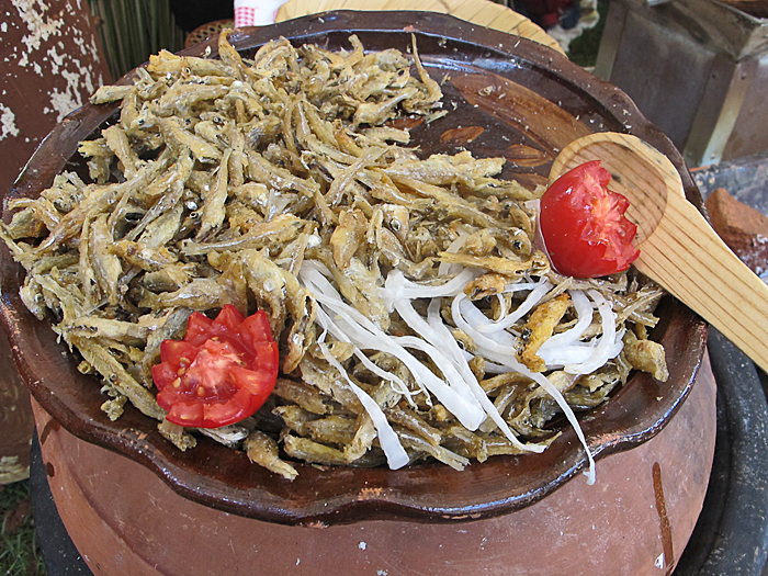 This market stand is loaded with chapulines (grasshoppers), an iconic snack from Oaxaca. Seasoned with garlic or chile, these are really delicious. Mexico Cooks! prefers the tiny ones (at the top of the photo) to the larger sizes.
