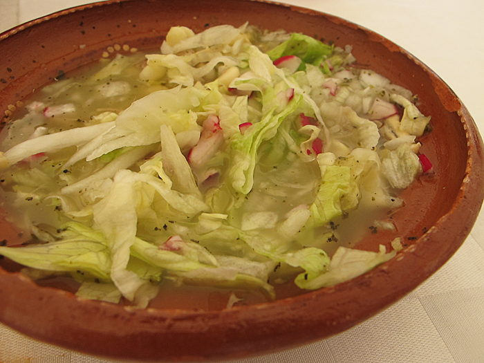 Our basket of tender grilled beef, hot tortillas, and a spritely salad. The side dishes we ordered–nopales, guacamole, grilled onions, the salad pictured above, and several others–disappeared just as fast as the kilo of carne asada and the pile of tortillas. Three of us ate and drank our fill for just about $20.00 USD.