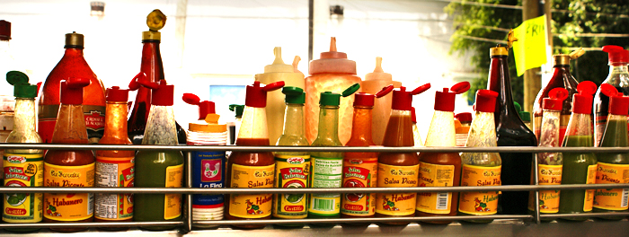 The other dish Luisa and I shared on our second breakfast visit to La Conspiración: hotcakes de elote (tender corn hotcakes). They're offered in two options: the first with ate (a fruit paste) and cheese, and the second with house-made jams. We took the jam option and were so delighted with these unusual and delicious hotcakes! And yes, it's the same word in both English and Spanish.