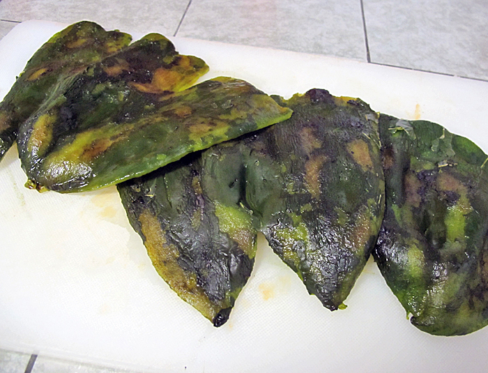 Note to Mexico Cooks! readers: the avocado most commonly seen outside Mexico is the Hass, a California hybrid avocado, and unfortunately the leaves of the Hass are flavorless and useless to make this sauce.