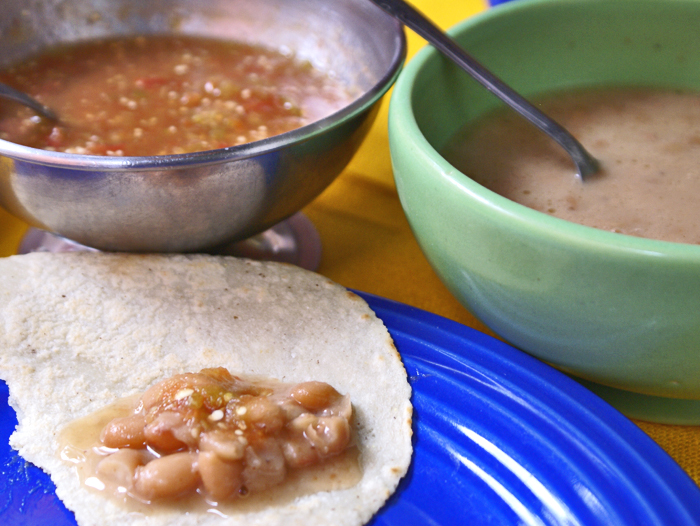 Really hot, steaming hot chocolate, traditionally made with Michoacán's chocolate de metate (stone-ground chocolate) with boiling-hot water rather than milk, is my favorite breakfast beverage at La Conspiración. I have to start my morning with coffee at home, just so I can move on to drink the hot chocolate at the restaurant. Photo courtesy La Conspiración.
