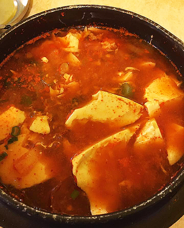 The Takxwayajun (caldo de pollo estilo totonaco con chile de mole, yerbabuena y cebollina) [traditional Totonaco chicken soup with chile de mole, mint, and chives], was hot and cozy on a cool December evening. The traditional Totonaco herbs, chile, and tender chicken combined for deep satisfaction.