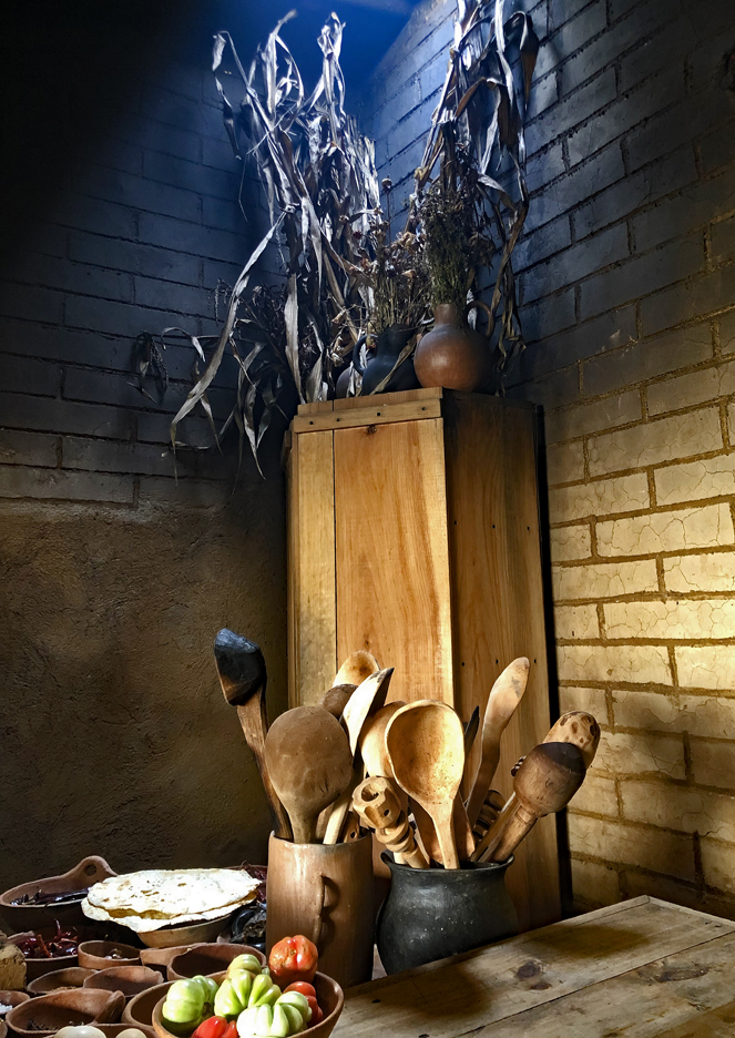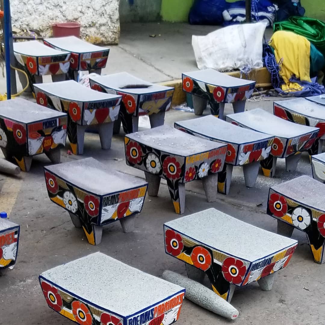 Metates (the rectangular grinding stone) and their metlapiles (the rolling pin), used for grinding everything from chocolate to chiles, beans to edible bugs.  One doesn't use the same metate for everything; separate metates keep the flavors of each of your ingredients pure.