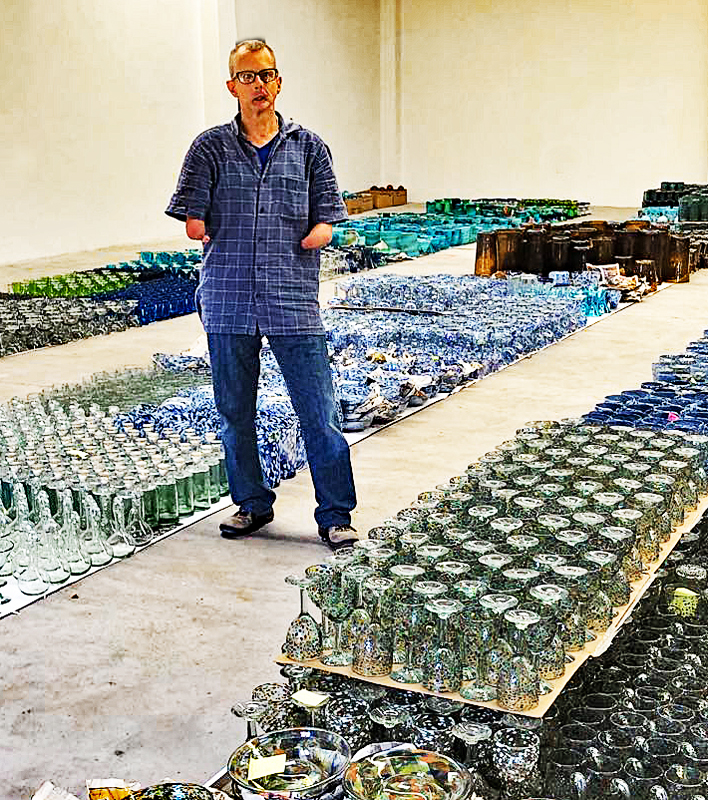 One of the highlights of the trip to San Miguel de Allende was the opportunity to meet in person a man I have long admired from afar.  Charles Hall manages Rose Anne Hall Designs, a highly successful family business which produces mouth-blown glass items for the home, as well as the most beautiful hand-made candles in Mexico.  Under Charlie's direction, the business dedicates itself to hiring people with disabilities–or what would appear to be disabilities–but who are enabled by the opportunity to create.  Charlie is a businessman, a philosopher, and a humorist, and a wonderful human being.
